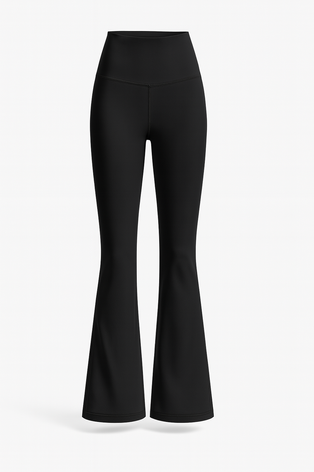 Women’s high-waist black bootcut sports pants, designed for flexibility, comfort, and a modern sporty look