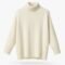 A soft off-white knitted turtleneck sweater featuring a relaxed, cozy silhouette. Designed with ribbed detailing on the neck, sleeves, and hem for a clean and refined look. Its warm, thick fabric makes it perfect for everyday winter outfits or effortlessly chic casual styling.