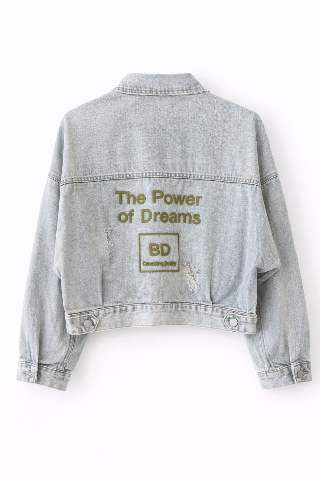 Bold, expressive, and effortlessly cool — the Dream Statement Denim Jacket is designed to stand out. Crafted from light-wash denim with a soft vintage finish, this piece brings a relaxed yet elevated street-style aesthetic.