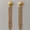 Luxurious long earrings featuring a shiny round stud on top with delicate cascading chains that create a flowing and elegant look. Perfect for formal events and sophisticated evening outfits.