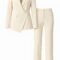 A refined off-white suit set featuring a chic wrap-style blazer paired with classic straight-leg trousers. The blazer’s clean lines and structured silhouette create an elegant, feminine shape, while the trousers offer a polished look with a mid-rise waist and practical side pockets. Crafted from smooth, high-quality fabric, this set is perfect for formal events, business meetings, or sophisticated coordinated outfits.