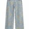 بنطلون جينز واسع باللون الأزرق الفاتح، يتميز بنقشات زهرية ناعمة مطبوعة باللون الأصفر الفاتح، مما يمنحه لمسة أنثوية عصرية ومبهجة. تصميمه المريح يجعله مثالياً للإطلالات اليومية الشبابية والكاجوال.