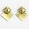 A pair of modern earrings with a sophisticated geometric design. The top features a bold, three-dimensional shiny square, while below hangs a tilted flat square with a smooth metallic finish. A perfect balance of boldness and minimalism, creating an artistic statement for a strong and stylish look.