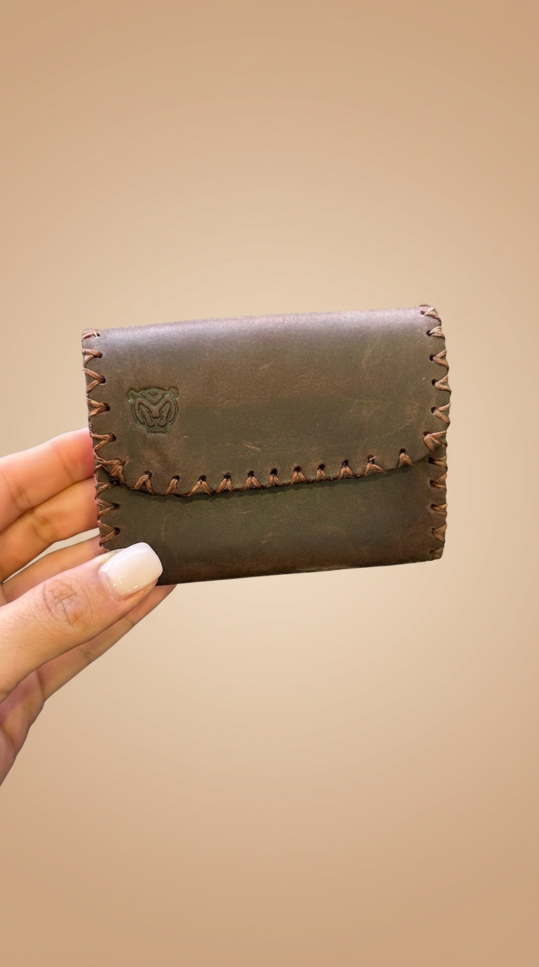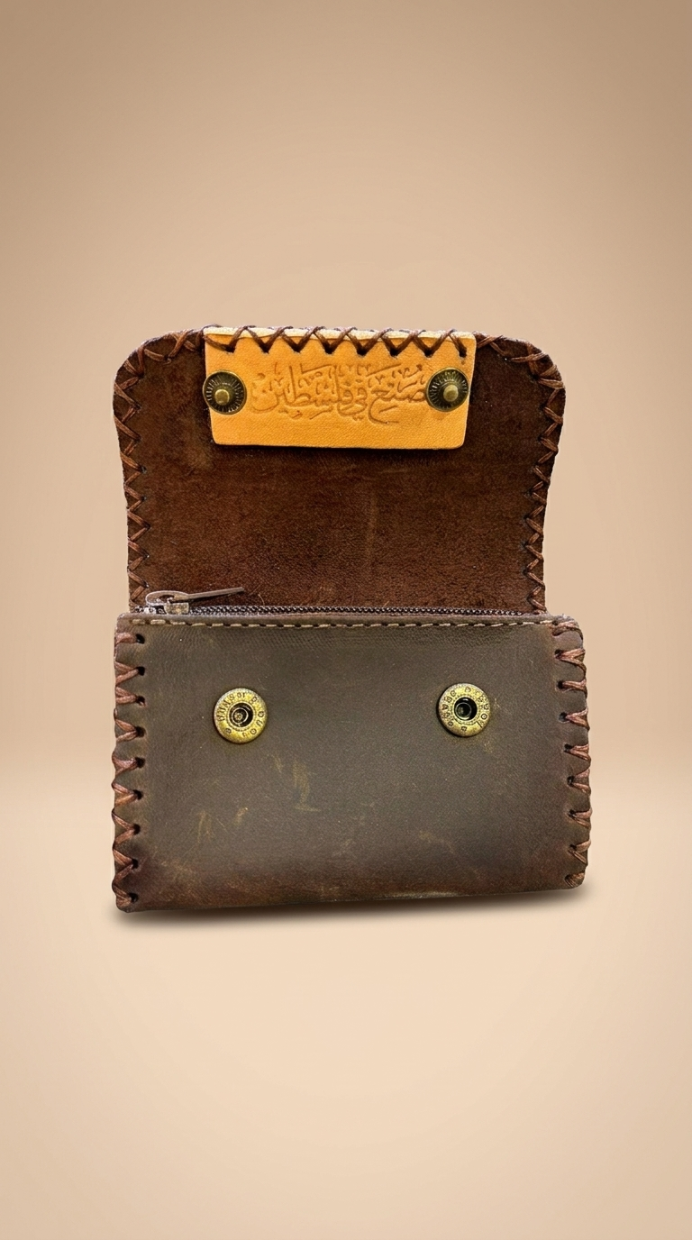 الخياطة اليدوية البارزة تعزز من متانة التصميم وتضيف لمسة حرفية واضحة، بينما يوفر الحجم العملي مساحة مثالية لتنظيم البطاقات بطريقة أنيقة وخفيفة للاستخدام اليومي.