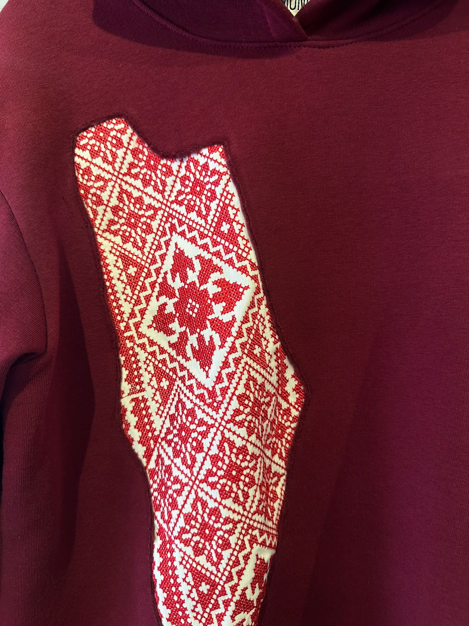 A premium adult hoodie designed to blend modern streetwear with cultural identity. Crafted in a rich burgundy tone, it features a striking heritage-pattern map-shaped panel on the front, creating a bold and meaningful visual statement.