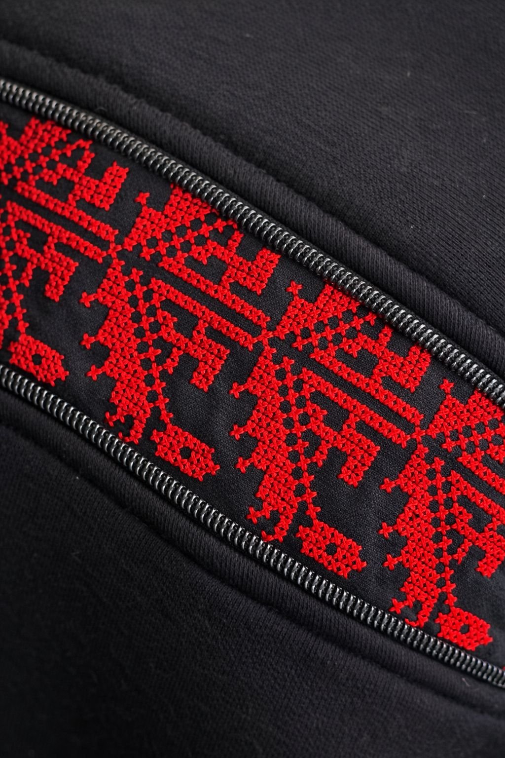 A modern black crewneck sweatshirt elevated with a bold red heritage-inspired embroidered stripe across the chest. Designed for a clean, premium streetwear look, this piece blends minimal design with cultural detailing. The relaxed silhouette and soft fabric make it perfect for everyday wear, while the embroidery adds a strong visual identity and luxury character.
