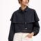 The standout layered panel across the chest adds depth and dimension, while the cropped silhouette keeps the overall look sharp and contemporary. Finished with subtle stitching details and functional front pockets, this jacket delivers both style and versatility.