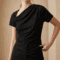 The Midnight Drape Dot Top features a soft stretch fabric with delicate micro polka dots and a flattering draped front detail. Designed to enhance the silhouette while keeping a refined, minimal look—perfect from day to night.