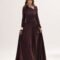 The long sleeves add a touch of understated elegance, while the gathered draping at the waist enhances shape and movement. The flowing maxi-length skirt with a subtle front slit brings softness and fluidity, balancing structure with ease.