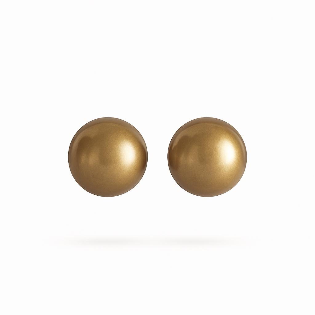 Minimalist stud earrings designed as glossy light-golden pearls, offering a timeless and elegant touch that complements both casual and formal looks .