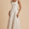 يتميز فستان بولكا بقصة علوية محددة مع نقشة نقاط ناعمة، وتنورة واسعة تعطي انسيابية جميلة. مزين بفيونكة خلفية تضيف لمسة أنيقة ومميزة، مثالي للمناسبات الصيفية والإطلالات الراقية.