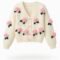 A soft knitted cardigan featuring charming 3D floral appliqués for a sweet and feminine touch. Designed with a comfortable fit, V-neckline, and front buttons, it combines cozy texture with playful details. The pink flowers and green leaves add a lively, standout look—perfect for cute and cozy outfits.