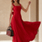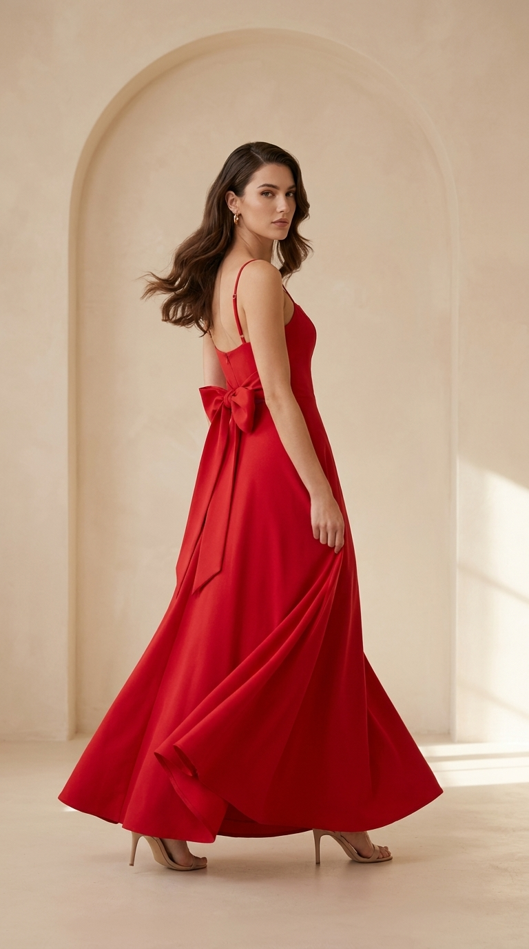 فستان أنثوي راقٍ بلون أحمر جريء يعكس القوة والأناقة في نفس الوقت. يتميز بقصة صدر مربعة نظيفة تعطي لمسة عصرية، مع خصر محدد بحزام جانبي ناعم يبرز القوام بشكل أنيق وطبيعي. القماش انسيابي بخفة، مما يعطي حركة ناعمة ومظهر فاخر مع كل خطوة.