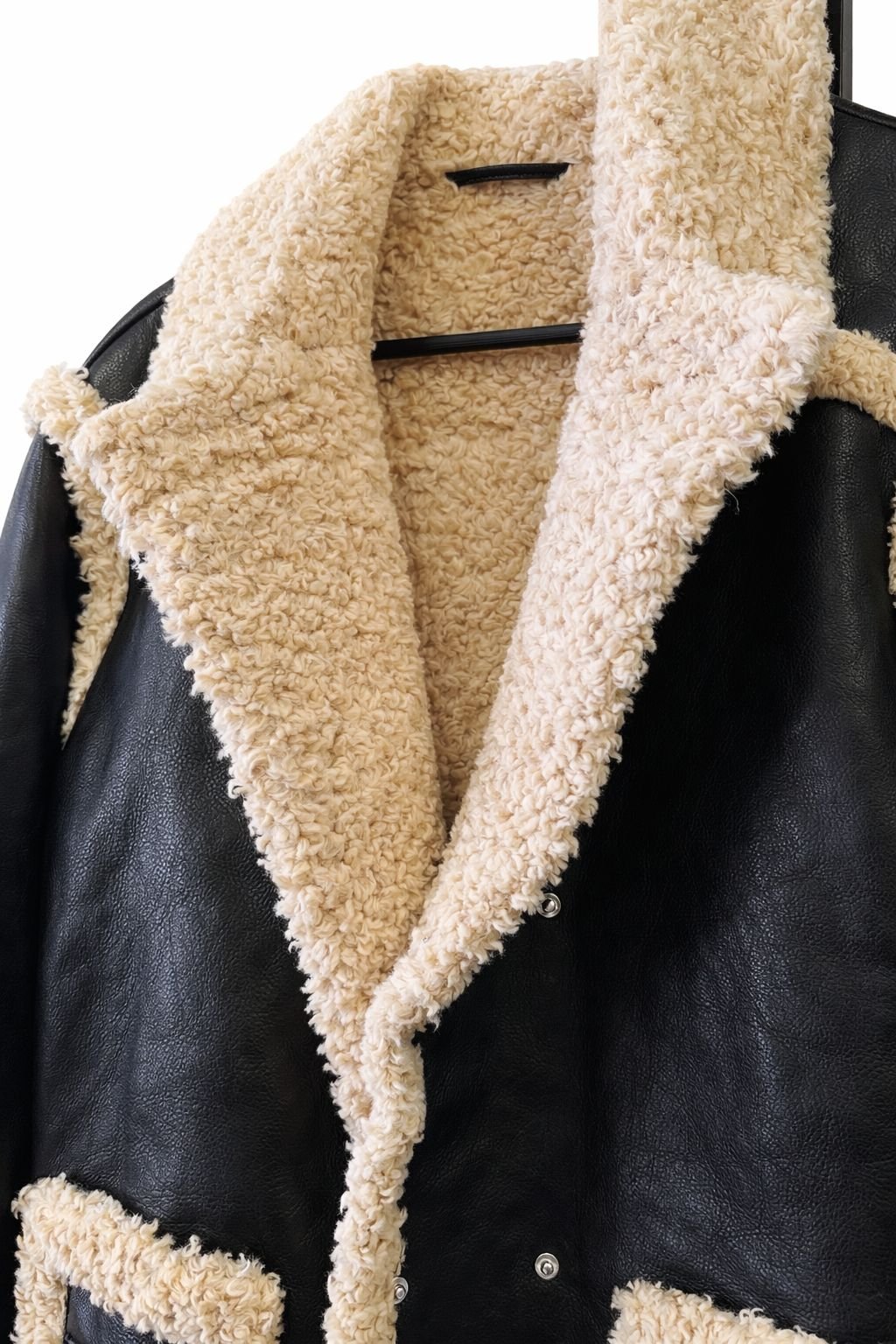 Be the first to review “Shearling-Trim Faux Leather Jacket – Black & Cream”