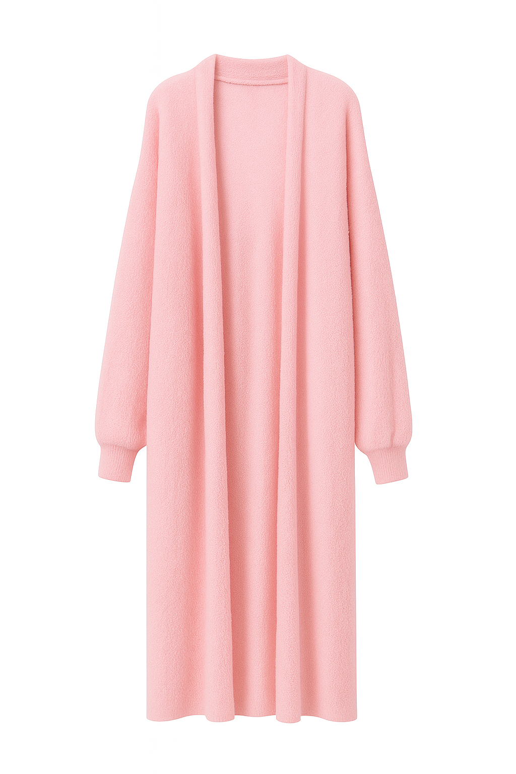 A long off-white cardigan with an open front design, crafted from a soft and cozy fabric that adds a refined and comfortable touch to any everyday look.