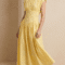 Designed with a softly gathered top and a structured cinched waist, this dress flows into a breezy midi skirt that moves beautifully with every step. The warm yellow tone adds brightness and elegance to your summer wardrobe.