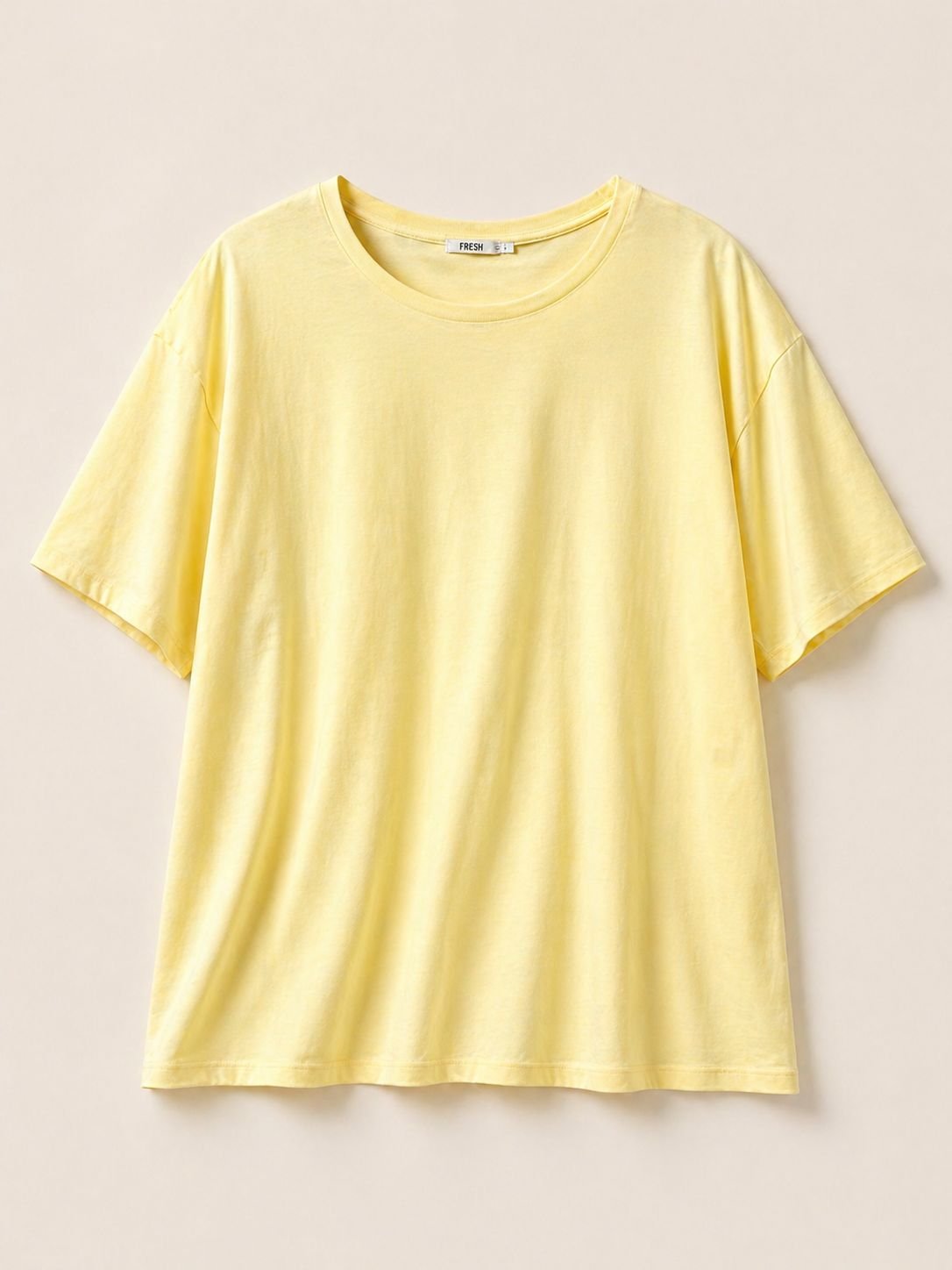 تيشيرت أساسي بلون أصفر هادئ مستوحى من ضوء الشمس، يعطي إحساس نظيف ومنعش للإطلالة اليومية. يتميز بقصة مريحة وانسيابية تناسب كل الأوقات، مع قماش ناعم وخفيف يضمن راحة طوال اليوم.