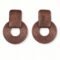 Drop earrings crafted in a wooden-inspired design, featuring a rectangular top piece paired with a textured circular bottom with concentric lines. A natural and artisanal look that combines simplicity with timeless charm.